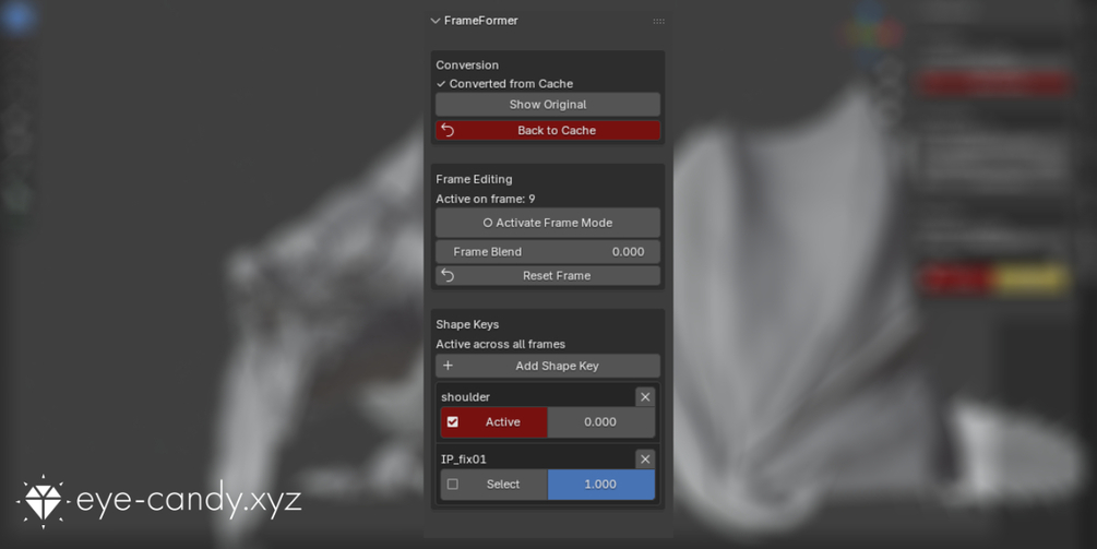 • 🛠️ Automatic Sync: No manual keyframing of shape keys needed; FrameFormer handles keeping your per-frame sculpts active on the correct frame.